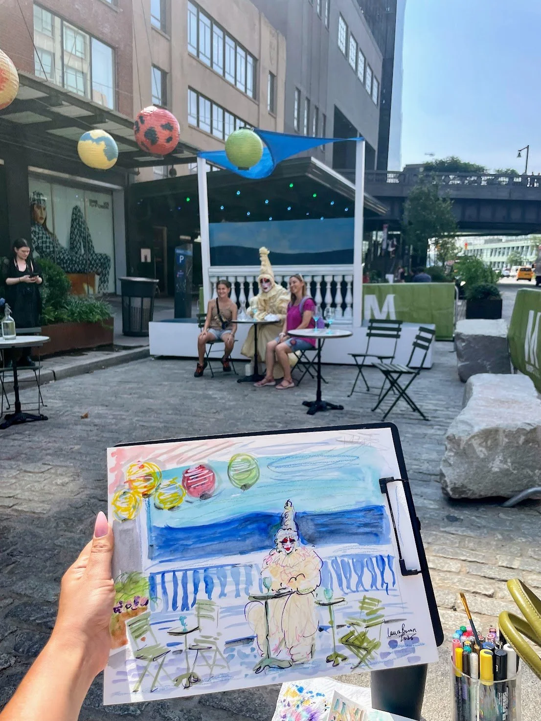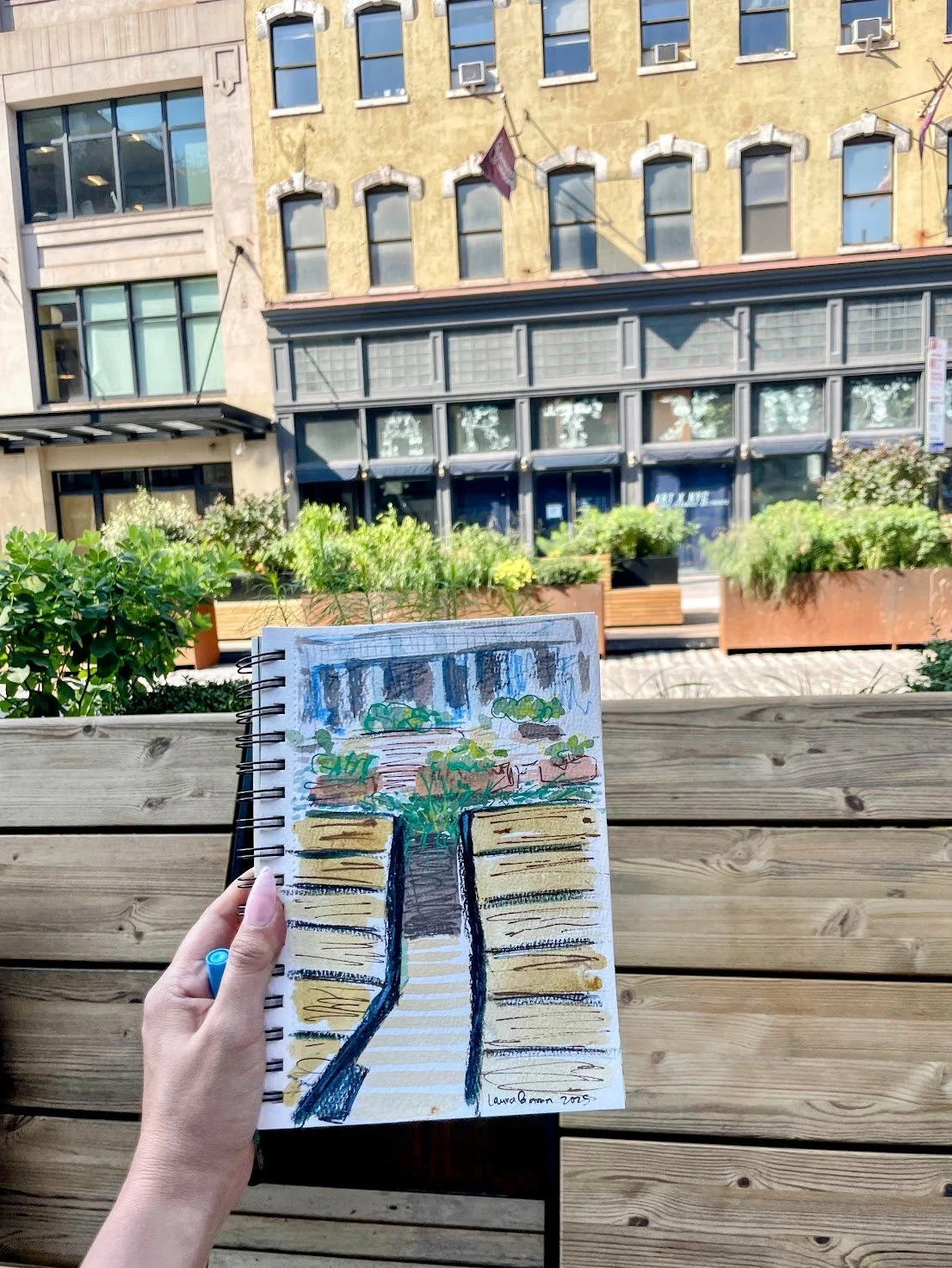 Laura Baran sketched Meatpacking’s new 14th Street Promenade and the “Step Into Hopper” public exhibit, a Whitney Museum x Meatpacking District collaboration on July 12, 2025, New York, NY.
